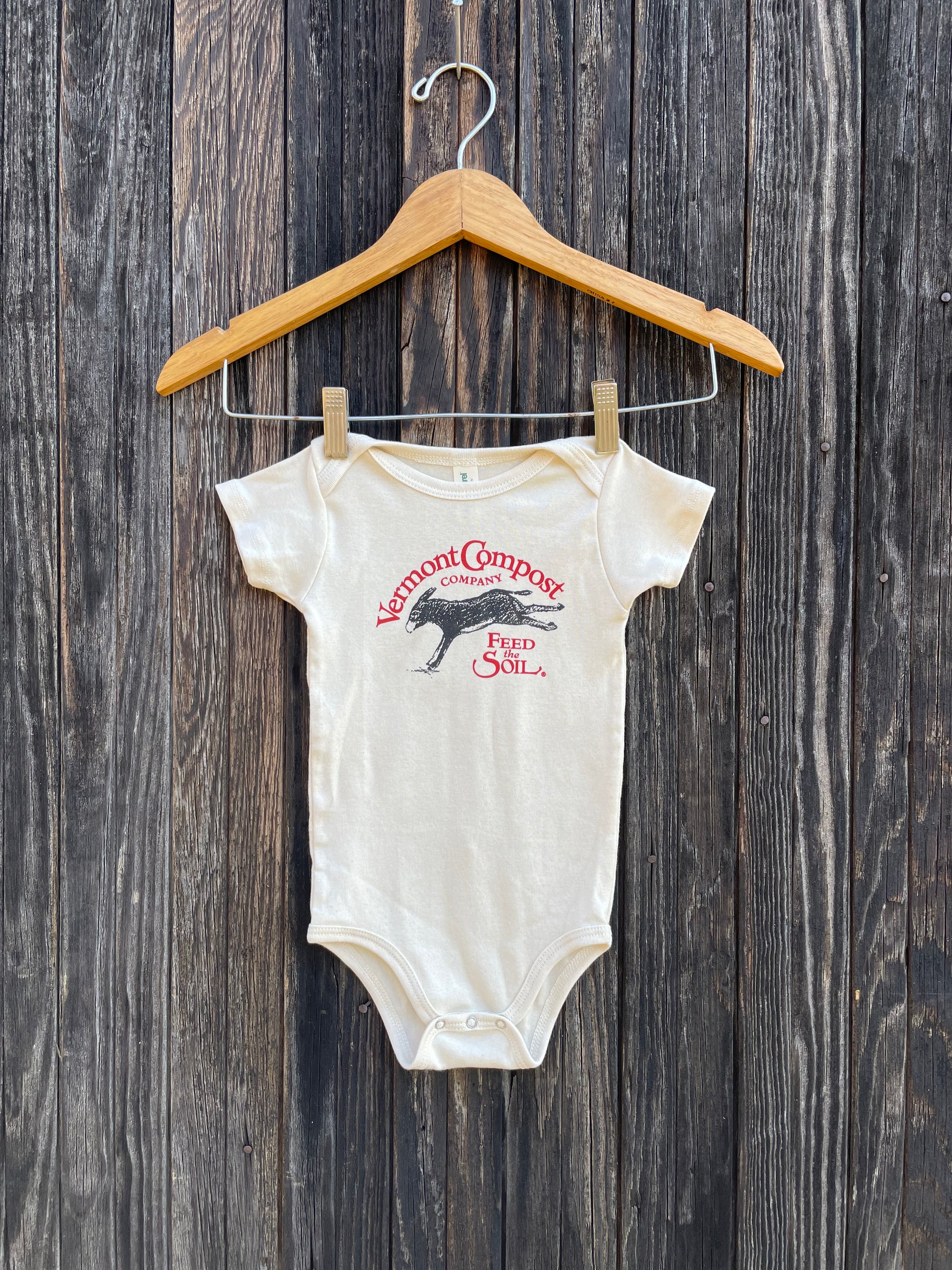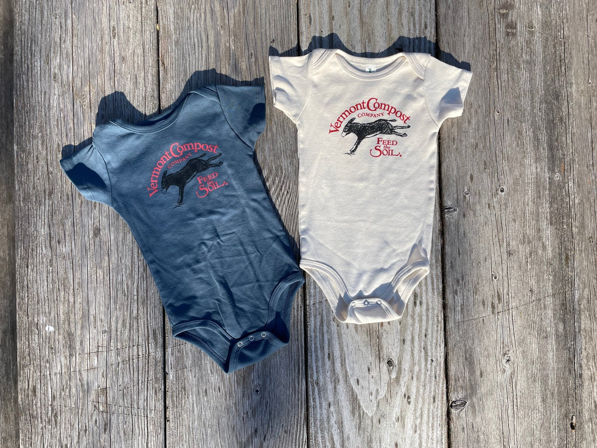 Our new Vermont Compost onesies are perfect for the tiny humans in your life! Made in the USA of 100% organic cotton.